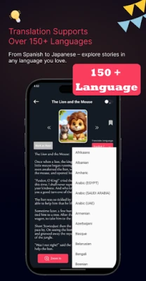 AI Story Translation (Any Language!): Experience a revolutionary way to learn! Our exclusive AI-powered feature allows you to translate entire stories into virtually ANY language instantly. Perfect for parents and children learning together or exploring diverse languages.