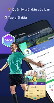 Dễ dàng thiết lập một giải đấu, giải đấu nhóm, cúp/loại trực tiếp hoặc vòng loại trực tiếp với trình tạo khung linh hoạt. Chọn từ các hình thức chơi khác nhau như tổ chức vòng tròn, bảng berger, loạt trận, bảng đấu loại đơn hoặc đôi và thậm chí thực hiện thăng hạng hoặc xuống hạng ở giải đấu tiếp theo. Tận hưởng sự hỗ trợ đầy đủ cho các luật futsal hoặc bóng đá, hỗ trợ cấu hình cầu thủ 2x2 đến 11x11.