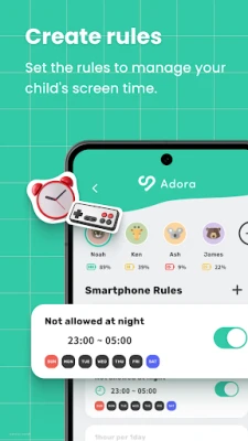 *Work in conjunction with "Adora for Kids" (please install "Adora for Kids" on your child's device).
