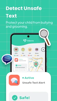 - Harmful Text Detection: Adora AI automatically detects harmful chats (e.g., cyberbullying, crime) on social media apps.