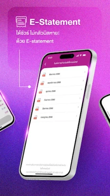 • E-Statement : ดูบิลจากแอปแบบรักษ์โลก กดปุ่ม E-Statement เลือกฟังก์ชั่น Paperless ทำตามขั้นตอนการยืนยันตัวตน กดยอมรับข้อตกลงและเงื่อนไข เท่านี้ก็ได้ช่วยโลกง่าย ๆ ด้วยมือคุณแล้ว