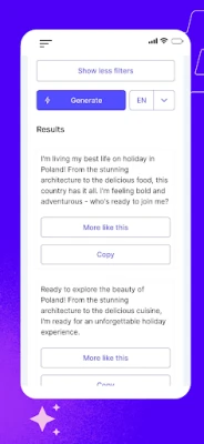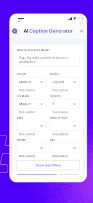 Our AI-powered Captions Generator produces high-quality, compelling Instagram captions that your audience will love. Plus, it eliminates the need to start from scratch and ultimately ends your struggles with creative block.