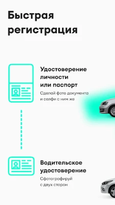 Когда скачаете приложение, попросим пройти несложную регистрацию. Оставить номер телефона, имейл и сделать фото двух документов — удостоверения личности и прав. Можете быть спокойны: данные шифруются и хранятся у нас надёжно. А документы нужны, только чтобы составить договор на расстоянии и проверить, можно ли вам за руль.