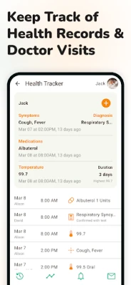 • Log doctor visits, immunizations, and medications in the health tracker.