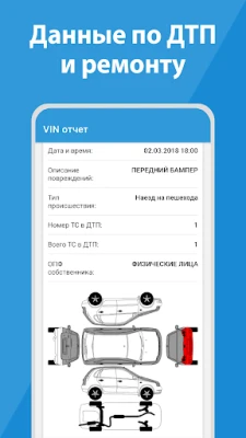 Загрузите полный отчет. Приложение дает возможность загрузить полный отчет по автомобилю и поделиться данными в мессенджере или в соцсетях. Приложение сохраняет историю ваших запросов, но не хранит данные по ним. Для получения информации необходимо подключение к интернету.