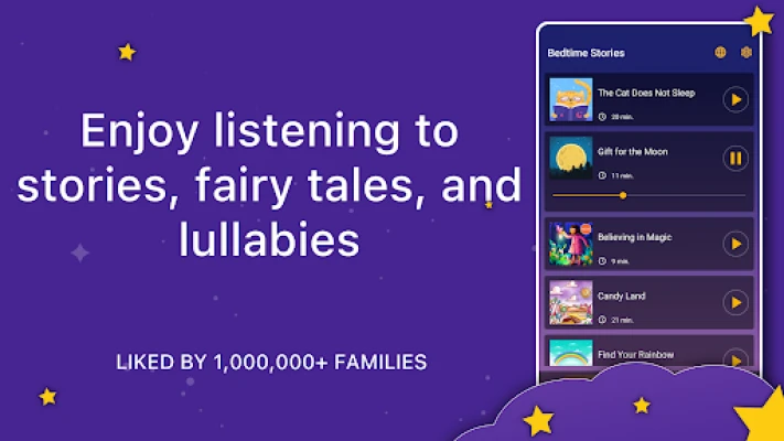 Bedtime Stories For Kids Sleep - An audio storybook app featuring little audiobooks, short stories, moral fairy tales, and lullabies for children, toddlers, and babies. These audio stories and books help kids reduce anxiety and fall asleep peacefully. Storytelling is a wonderful bedtime ritual, and our professional storyteller ensures your little ones relax and drift into a restful sleep, filled with sweet dreams. Listen to bedtime audiobooks every night to help your child fall asleep easily. Baby lullabies are perfect for calming infants. Nighty night! 🌙