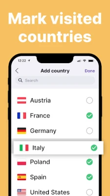 Create a Personalized Logbook Document your adventures with a customizable logbook of coutries you've visited to keep your experiences alive and well-organized.