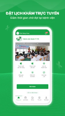 [Đang hoàn thiện] Ứng dụng chính thức của Bệnh viện Quân Y 175 giúp người dân dễ dàng đăng ký khám bệnh trực tuyến theo giờ, giảm thời gian chờ đợi tại Bệnh viện. Giờ đây, với ứng dụng của viện người dân có thể: Đăng ký khám online theo giờ, lưu trữ lịch sử khám của chính mình hoặc người thân, xem lại chi tiết hành trình khám chữa bệnh của mình, thanh toán Online thuận tiện, nhận thông báo đi khám hoặc tái khám từ bệnh viện, cập nhật bài viết sức khoẻ từ đội ngũ chuyên gia/Bác sĩ chính quy… Tất cả thủ tục đều được thực hiện online, giúp người dân giảm bớt thời gian chờ đợi tại Bệnh viện.