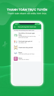 CÁC TÍNH NĂNG NỔI BẬT • Đăng ký khám bệnh theo giờ ngay trên điện thoại • Thanh toán tiền trực tuyến với nhiều hình thức: thẻ Ngân hàng, ví điện tử MoMo • Nhận thông báo nhắc đi khám hoặc tái khám, thông qua ứng dụng và email • Hướng dẫn đi khám ngay trên điện thoại • Theo dõi lịch sử khám bệnh của chính mình và người thân • Cập nhật thông tin sức khoẻ chính thống từ đội ngũ chuyên gia và bác sĩ