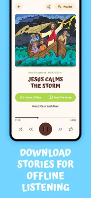 - Each audio begins with the associated scripture being read in a child’s voice, and is then followed by the story being narrated in great detail to help your child better understand the principles of the story.