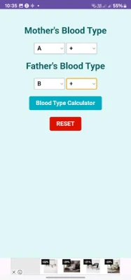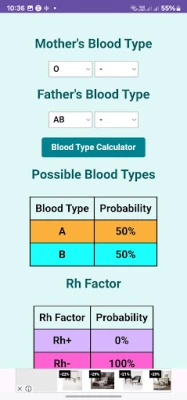 Introducing the Blood Type Calculator – a quick, user-friendly tool designed to help you determine your potential blood type with just a few clicks! With an intuitive interface and vibrant, comfortable colors, the tool makes it easy for anyone to use. All you need to do is select the mother and father's blood types, and the calculator will instantly provide you with the possible blood types you could inherit, including the Rh factor.