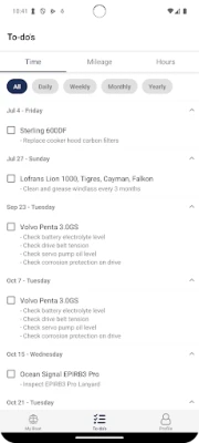 Assign maintenance tasks based on dates, mileage, or engine hours and view them in a calendar-like to-do screen. Check off completed tasks, skip those you don't need, or fully customize your maintenance schedule to suit your needs—even the ones curated by us.
