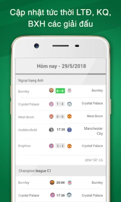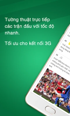 Thông tin được cập nhật liên tục trước, trong và sau trận đấu, kết quả được cập nhật trực tiếp, có thông báo khi có ghi bàn, phạt thẻ, bắt đầu và kết thúc trận đấu.
