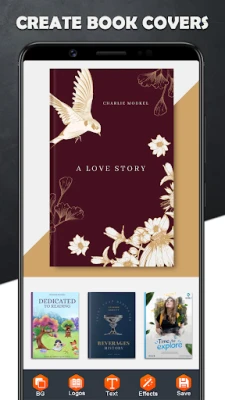 Book cover app is loaded with lots of free resources including 100s of templates, huge collection of free images, fonts, free logo and much more.