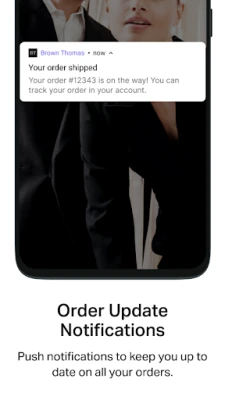 ORDER UPDATES: With the Brown Thomas Shopping App, you can get immediate updates on the status of your orders in your account. Enable push notifications to get an update whenever your order ships.