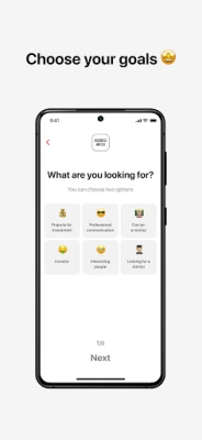 3. Mutual goals - if you select "Looking for an investor", the algorithm will show you people looking for projects to invest in and are in your area;