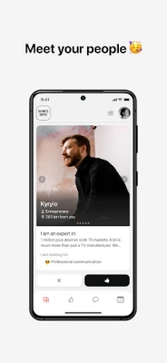Users of the free version have access to the basic features of the app: daily viewing of 20 profiles of people with common interests, messaging, and a business events calendar.