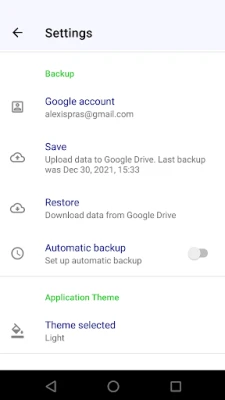 • Backup to Google account (Google Drive) is fully supported. All data may be fully saved to the Google Drive for your Google account and then restored on any device. Images attached to service records are also fully backed up.