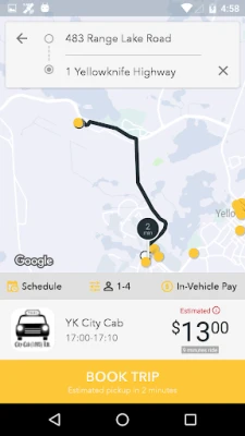 Order a taxi cab in Yellowknife, NT from City Cab (1993) Ltd. using your Android phone