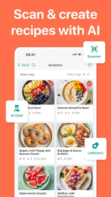 • Scan photos of cookbooks or handwritten cards with the AI Recipe Scanner
