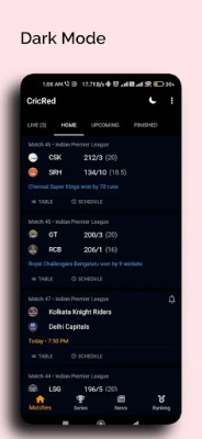 Switch to dark mode for a comfortable viewing experience, especially during night matches.