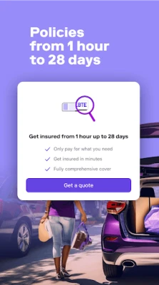 Download the Cuvva app, get a quote and be covered in minutes. Lend or borrow a car whenever you need to, or insure your own car until you sort out longer-term cover. Our fully comprehensive policies last from 1 hour to 28 days, so you can: