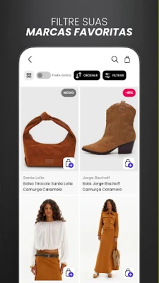 - Filtros Avançados: Encontre exatamente o que deseja por cor, tamanho, preço e marca.