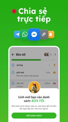 Chia sẻ danh sách với người khác — giúp việc mua sắm với gia đình và bạn bè dễ dàng hơn nhiều. Danh sách của bạn sẽ được đồng bộ hóa, vì vậy mọi thay đổi sẽ được cập nhật ngay lập tức cho người khác.
