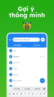 Phân loại thông minh — sản phẩm trong danh sách của bạn sẽ được sắp xếp tự động theo quầy hàng trong siêu thị, giúp việc mua sắm của bạn trở nên nhanh chóng và thuận tiện hơn.
