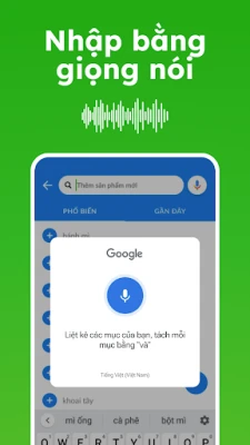 Nhập dữ liệu bằng giọng nói — cho phép bạn đọc cả danh sách một cách nhanh chóng.