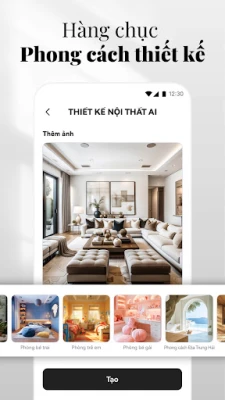 Tải lên ảnh căn phòng của bạn, chọn loại không gian và phong cách yêu thích. AI sẽ phân tích và tạo ra thiết kế phù hợp với sở thích của bạn, từ hiện đại đến mộc mạc.
