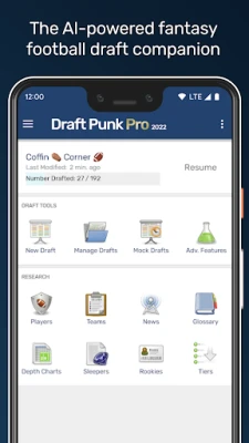 Draft Punk is the most advanced fantasy football draft kit, companion app, and Mock Draft simulator today. It uses advanced AI and machine learning under the hood to generate the most accurate rankings for your league, custom draft pick recommendations, player tiers, sleepers, and more.