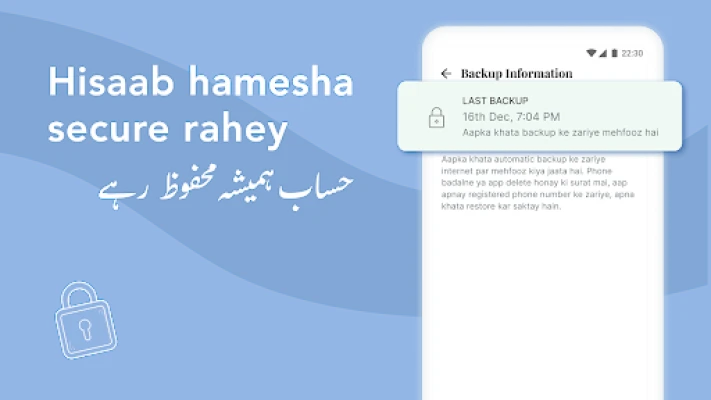 Fingerprint Lock, Pin Code aur Internet se Data Back up rakhey aapka tamaam hisaab safe, secure aur hamesha aapke nazroun kay liye.