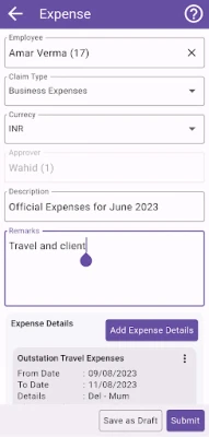 5. Advances and Expense claims – travel or other advances, settle through a voucher, map policies around reimbursements, limits by seniority, city type, travel type