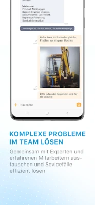 Sollten Sie ein Problem nicht lösen können, bietet die App Ihnen die Möglichkeit, gemeinsam mit Kollegen und Experten eine Lösung zu finden. Community und Team Knowledge identifiziert die richtigen Ansprechpartner anhand ihrer Skills und erstellt automatisch einen entsprechenden Chat. Sobald eine gemeinsame Lösung gefunden wurde, wird der Chat geschlossen und die gefundene Lösung für die Zukunft gesichert.