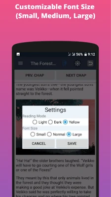 ✨Comfortable font size and variations of reading modes you can select from.