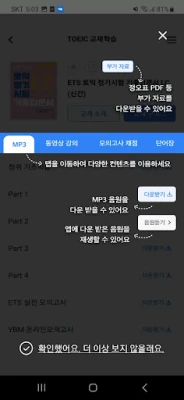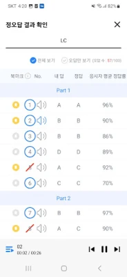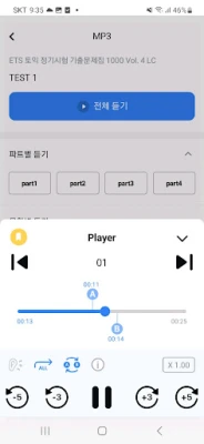 1. 실제 시험 성우가 녹음한 LC 음원 MP3 다운로드 및 앱 내 재생 기능 (속도 조절, 반복 청취)