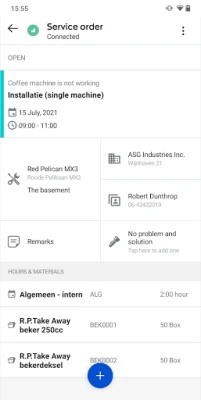 With the Exact Field Service H app, service engineers have all work order information, customer service history, documents, service parts info, manuals etc. available in the field.
