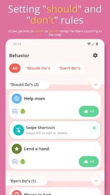 Setting clear "should" and "don't" rules, such as "1 point for offering to help" or "1 point for using inappropriate language," allows parents to reward or punish family members according to the rules and sets a clear code of conduct for children.