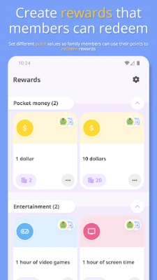 Flexibility to create and modify rewards, set different point values so family members can use their points to redeem rewards. Allow different family members to see different reward options by controlling visibility and supporting commenting on rewards.
