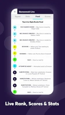 Live Statistics and Opta Events - Compare live statistics across multiple rank tiers, and watch live events of your FPL Squad with your own personal Opta Match Events feed.