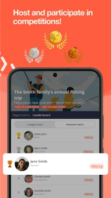 With Fishbuddy, you'll automatically be able to create and participate in a range of informal competitions and climb the leaderboards. Who has caught the biggest cod in the family, or how many species have you caught this summer? Who has the best fishing luck at work?