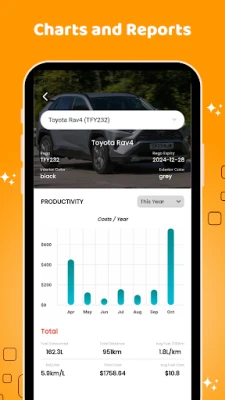 + Stay on top of your vehicle’s financials by tracking and logging every expense. Record costs for fuel, insurance, fines, maintenance, and more in one central location.