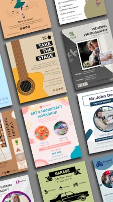 Latest poster maker with new features helps you to design posters, logo, Advertisement banners, ads flyers, invitation cards, business card, happy birthday greetings, music festival posters, event poster and graphics for social media posts for non professional graphic designers. Create engaging and turning flyers with the flyer maker, poster maker and graphic design app.