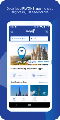 Download the FLYONE app - an interactive, intuitive and user-friendly platform for booking flights, checking in, receiving discounts, using vouchers and testing other smart options.
