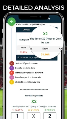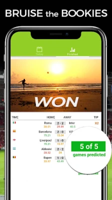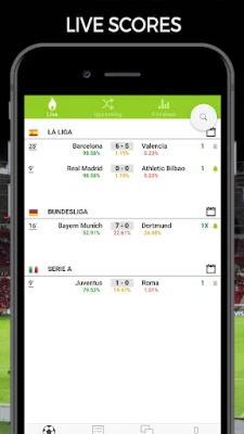 Besides serving tips in the format of 1, X, 2 the app also give a full slip predictions.