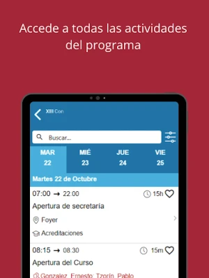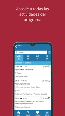 Con la App de Grupo Elis vas a poder acceder a todos los congresos y eventos organizados por la empresa. Cada evento posee las siguientes características: