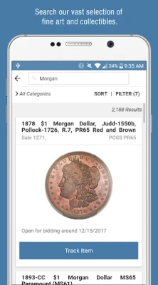 The new Heritage Auctions android app allows collectors to browse and find US & World Coins, Rare Currency, Fine & Decorative Art, Western Art, Illustration Art, Vintage Comic Books & Comic Art, Movie Posters, Entertainment & Music Memorabilia, Jewelry & Timepieces, Vintage & Couture Handbags, Sports Collectibles, Historical & Political Memorabilia, Rare Books & Manuscripts, American Indian Art, Air & Space Memorabilia, Civil War Memorabilia, Vintage & Contemporary Photography, Nature & Science Specimens, Fine and Rare Wine, URL domain names and other Intellectual Property, Luxury Real Estate and more.