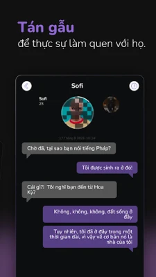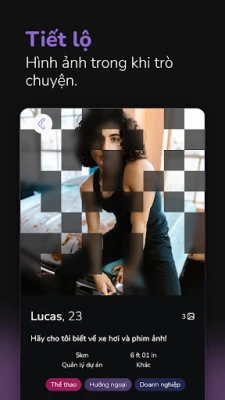 Chúng tôi là một cách mới để kết nối, trò chuyện và gặp gỡ - nơi tính cách và sở thích được coi trọng ngang bằng với thể chất. Ảnh hồ sơ của bạn bị mờ đối với tất cả người dùng. Với mỗi tin nhắn được trao đổi, một phần ảnh của bạn sẽ được tiết lộ cho đối tượng của bạn và ngược lại!
