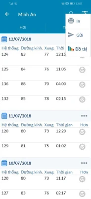 Xuất báo cáo áp lực máu sang PDF hoặc biểu đồ